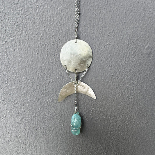 BLUE QUARTZ AND SILVER MOONS NECKLACE