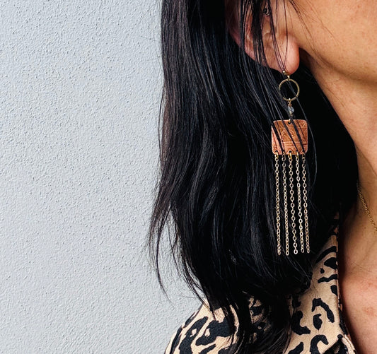 ETCHED COPPER CHAIN FRINGE EARRINGS