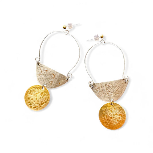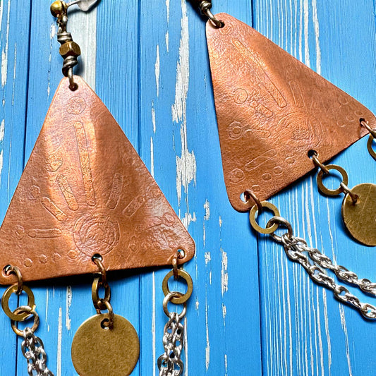 ETCHED COPPER SUN TRIANGLE EARRINGS