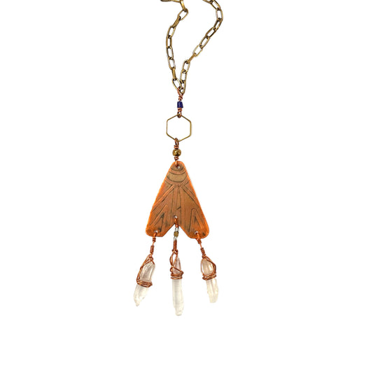 ETCHED GEOMETRIC COPPER + QUARTZ NECKLACE