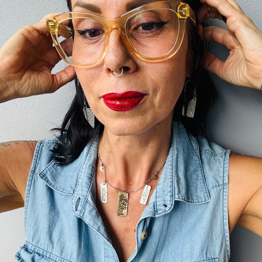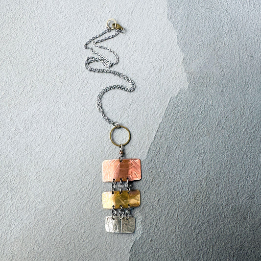 ETCHED MIXED METAL RECTANGLE NECKLACE