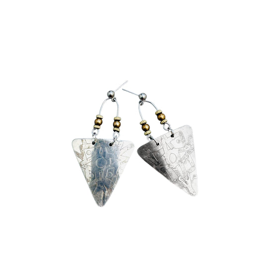 TRIBAL ETCHED SILVER TRIANGLE EARRINGS