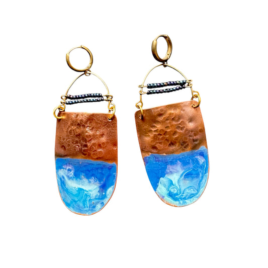 OCEAN BLUES TEXTURED COPPER EARRINGS