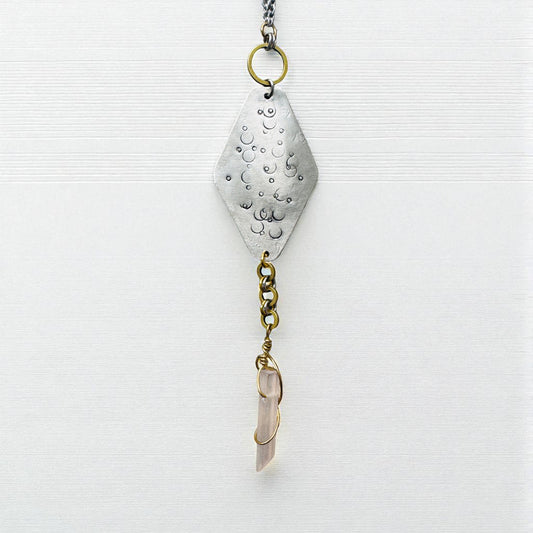 ROSE QUARTZ AND SILVER STAMPED ROMBO NECKLACE