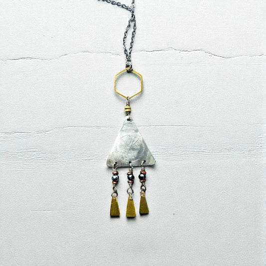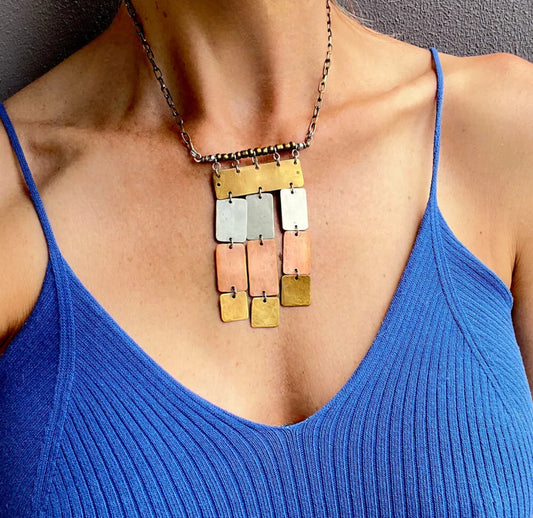 MIXED METAL RECTANGLES SHIELD NECKLACE