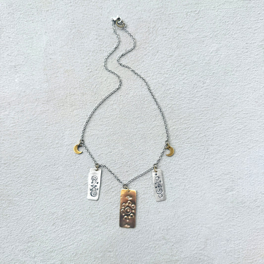 MIXED METAL LUNAR STAMPED RECTANGLE NECKLACE