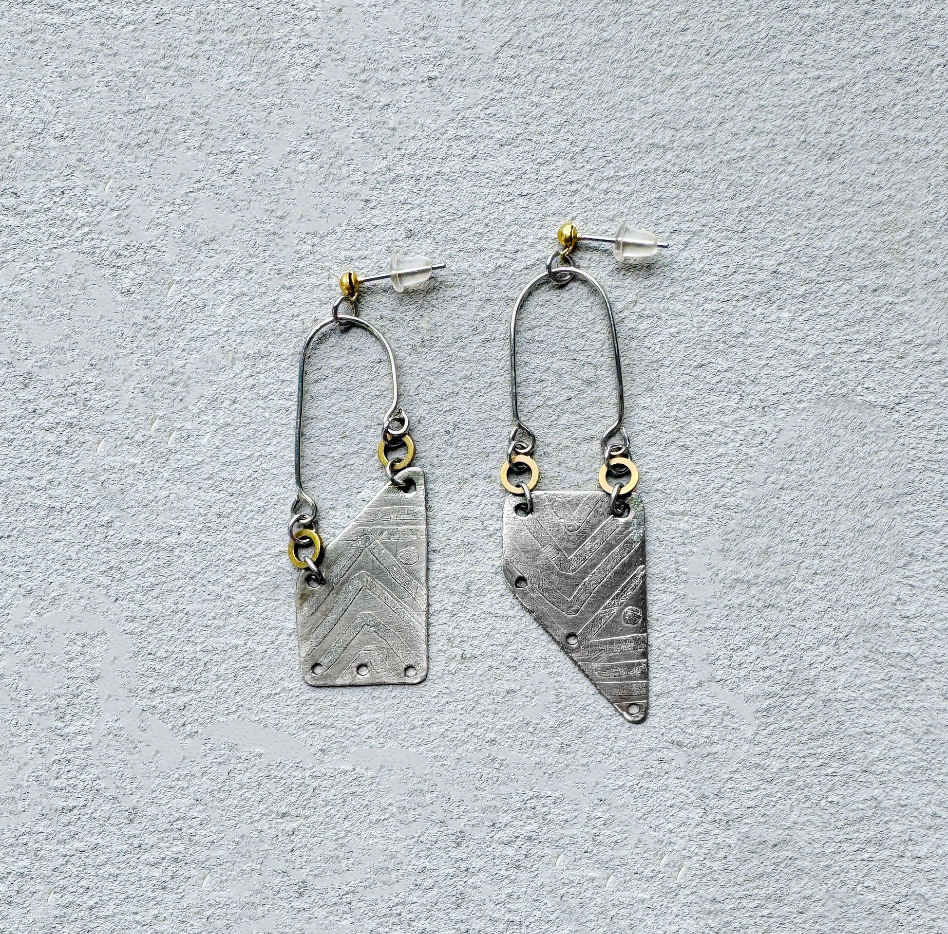 ETCHED SILVER ASYMMETRIC EARRINGS
