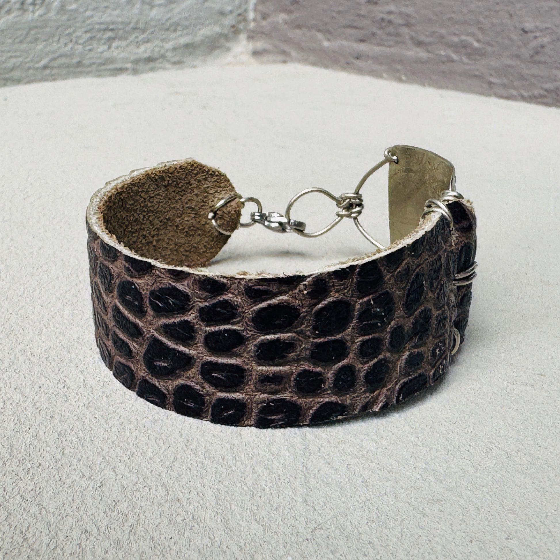 ETCHED SUN AND MOON METAL + LEATHER BRACELET - end of season sale