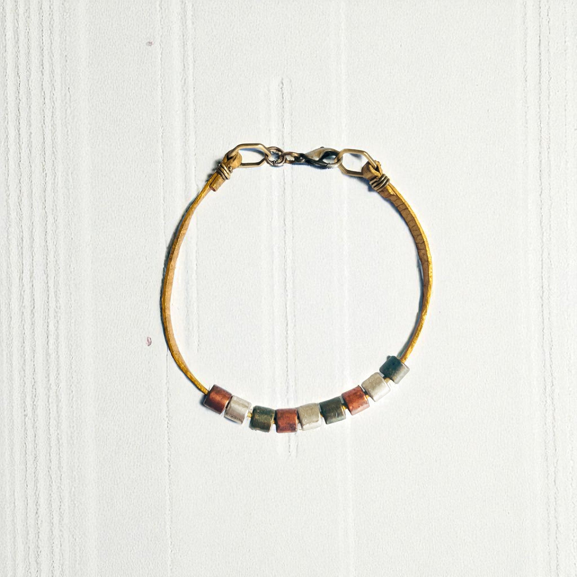 SIMPLE BEADED GOLD LEATHER BRACELET - end of season sale